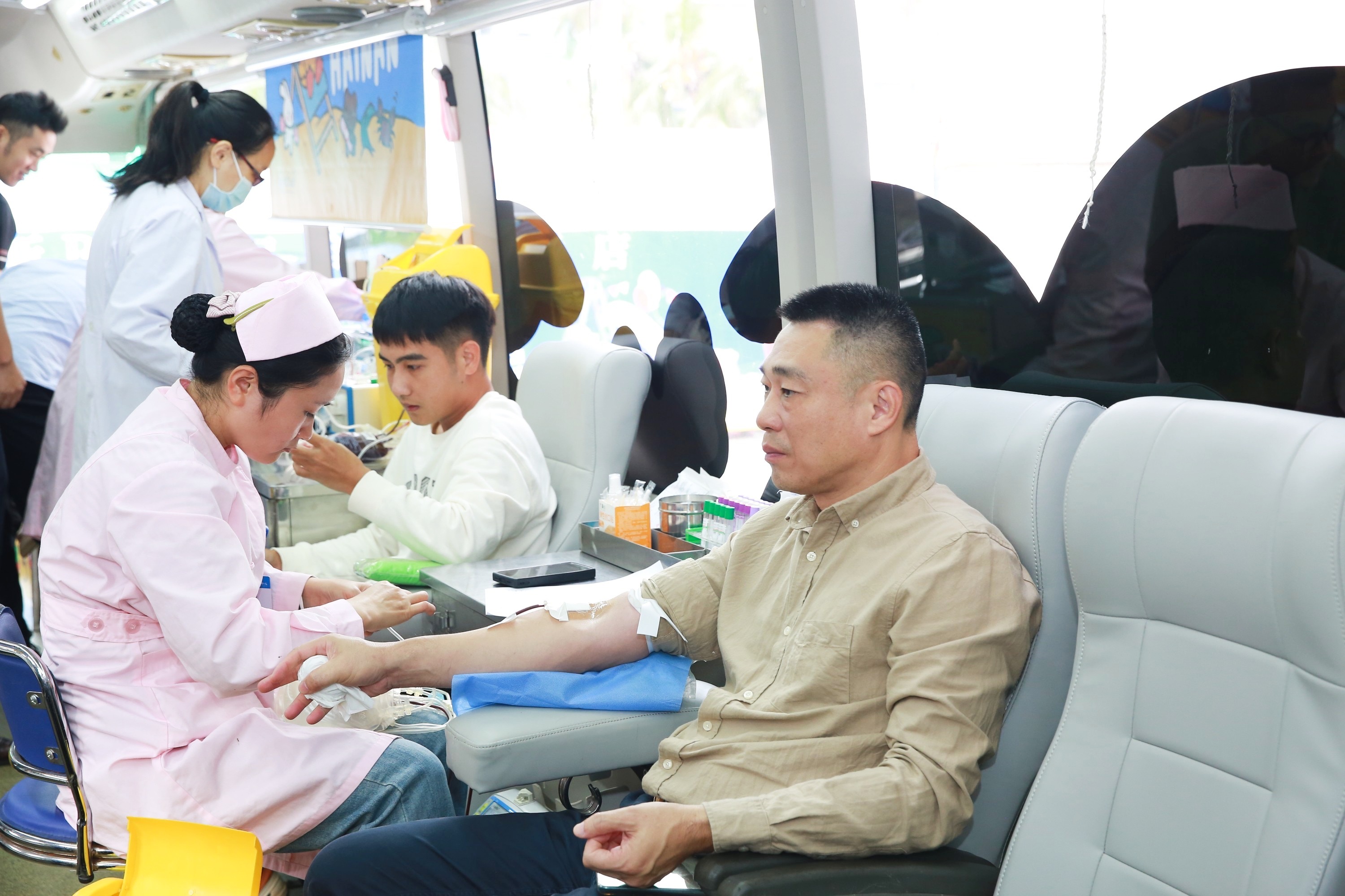 活動(dòng)現(xiàn)場,參與獻(xiàn)血的員工們在海南省血液中心醫(yī)務(wù)人員的指導(dǎo)下,有序完成信息登記、血壓測量、血液化驗(yàn)初篩等流程后進(jìn)行獻(xiàn)血。獻(xiàn)血的隊(duì)伍中既有多年堅(jiān)持無償獻(xiàn)血的“老將”,也有初次參與的“新兵”,從黨員到海南民生燃?xì)獾确肿庸镜膯T工,大家以飽滿的熱情加入到這場“熱血”的隊(duì)伍中。